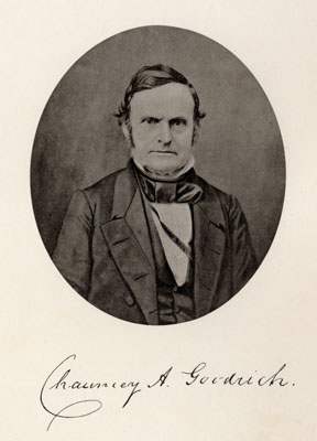 "Professor Chauncey Goodrich was not formally appointed to the professorship of the pastoral charge until 1839, but from the beginning his relations to the professors were so intimate, and his services to the seminary so constant, that we commonly think of him as virtually a member of the Faculty from the outset. He was possessed of a practical tact, a power of finding means for ends, a readiness and shrewdness which, in connection with his familiarity with the world of men, his self-denying benevolence and his catholic spirit, qualified him to render services to the institution for which his colleagues were less competent " |